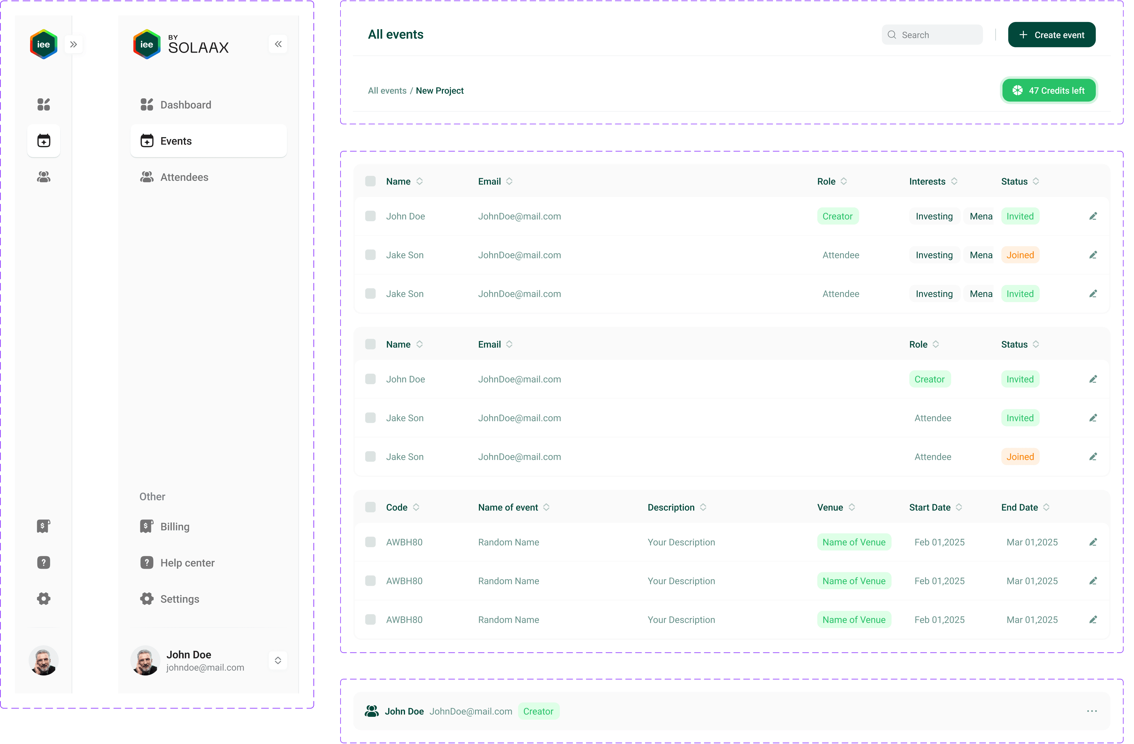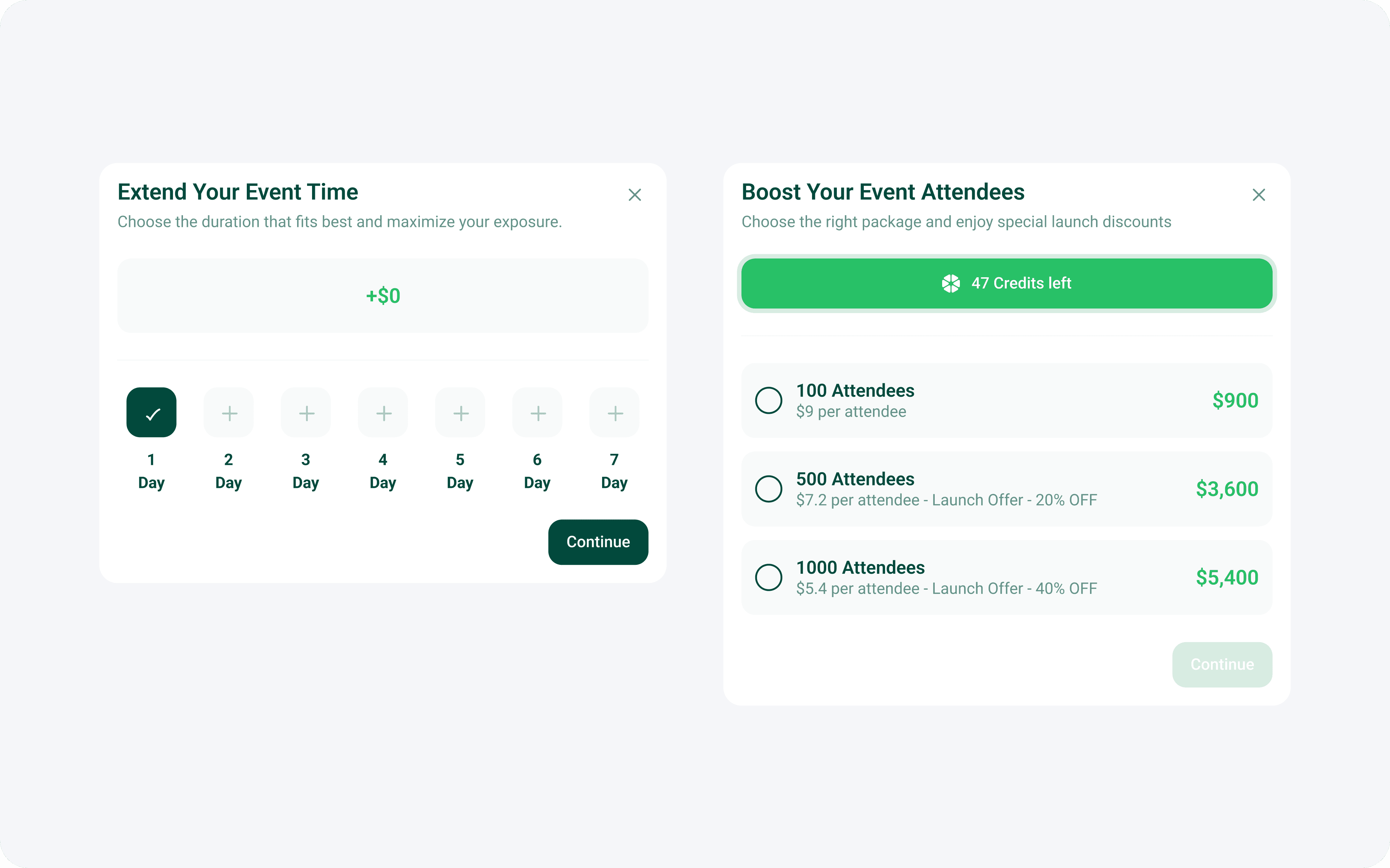 To address this, we designed a point-based system where the first 50 attendees of any event could be invited for free. As organizers added additional participants beyond this threshold, points were gradually deducted based on usage.