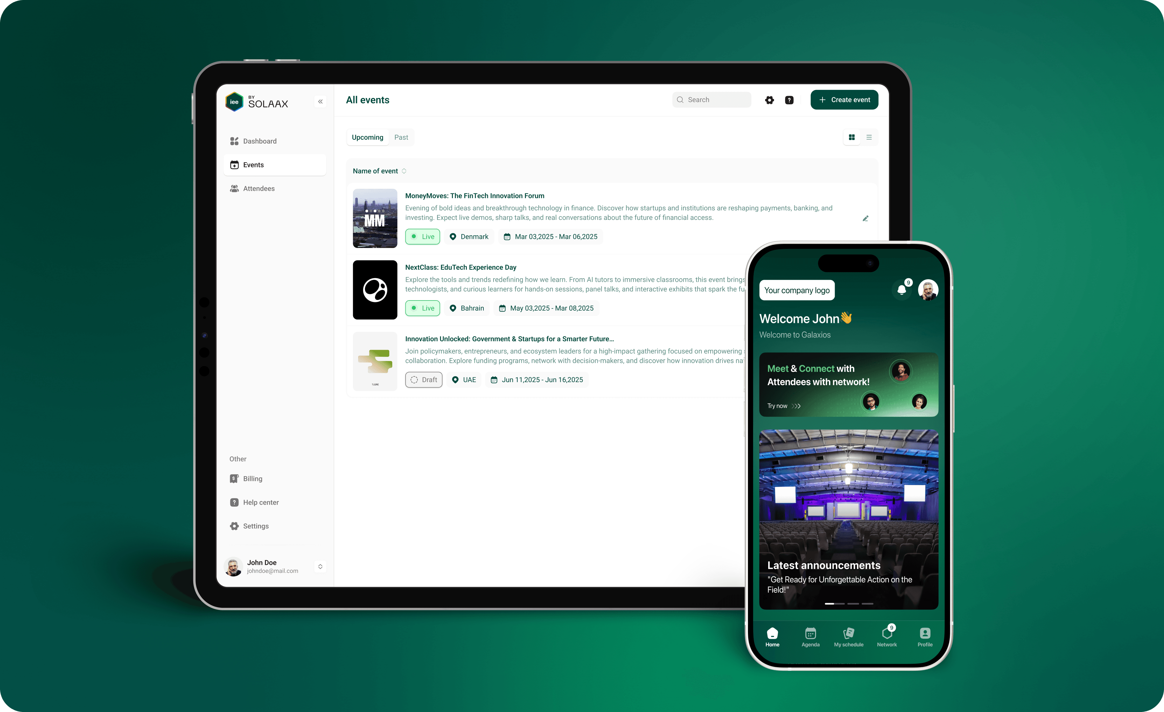 Organizers were able to create and configure events end-to-end using the web platform, with actions reflected immediately in the mobile experience, validating the connected ecosystem approach.