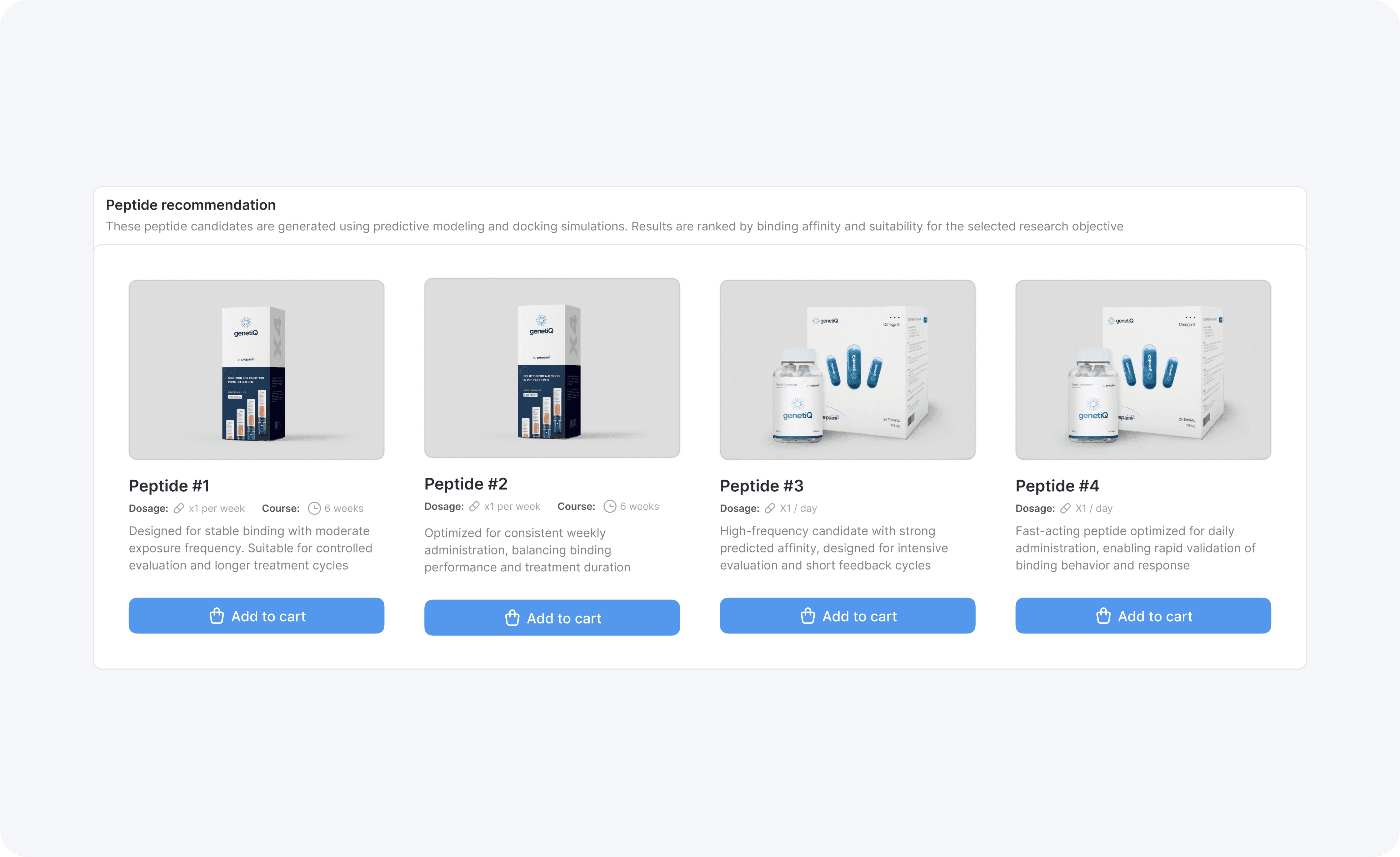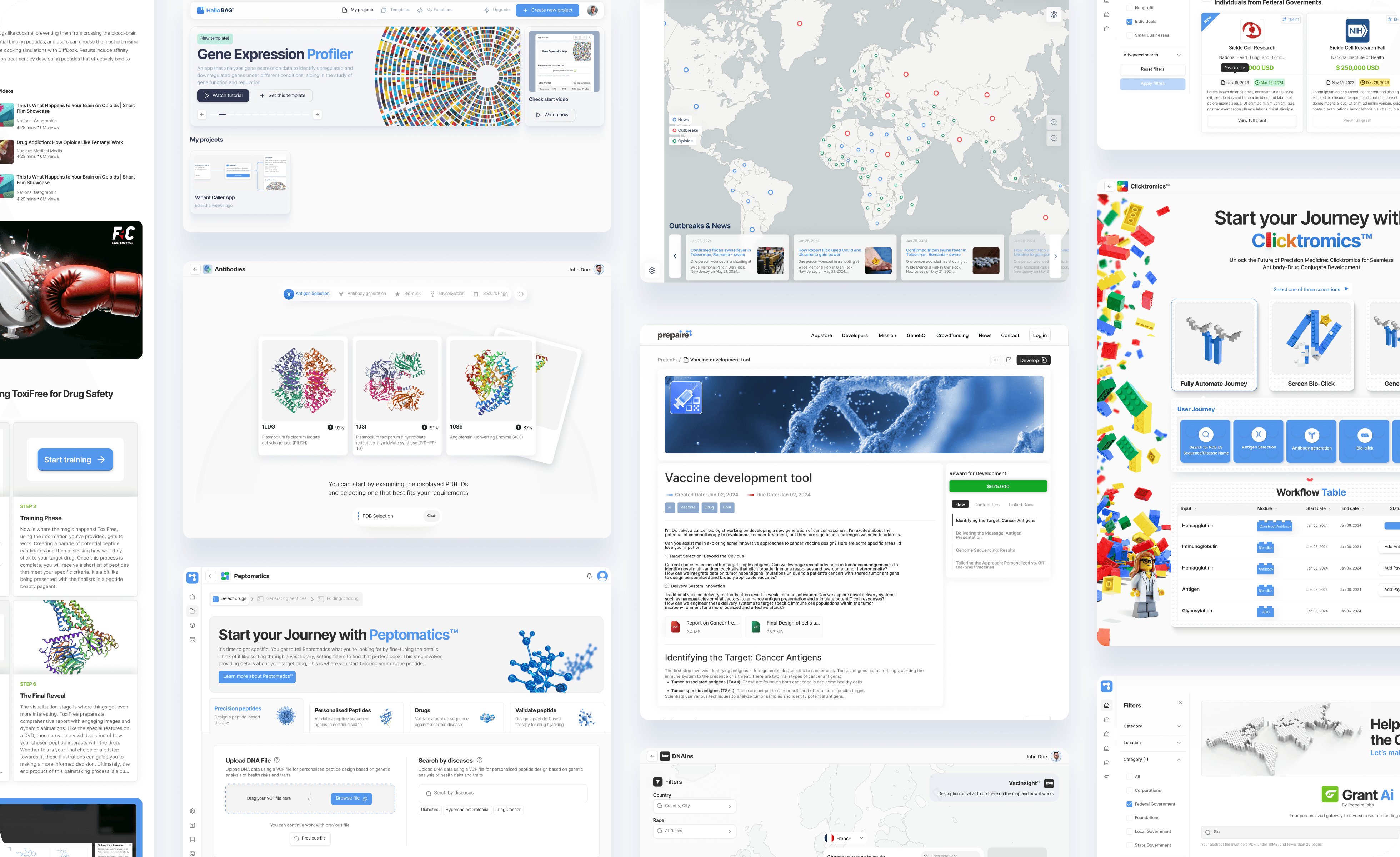 Applications such as Prepaire Shield and Peptomatics demonstrated that complex datasets and computational processes could be surfaced in focused, goal-oriented flows. Interactive visualization, AI-assisted recommendations, and modular workflows supported faster exploration and more confident decision-making during early research phases.